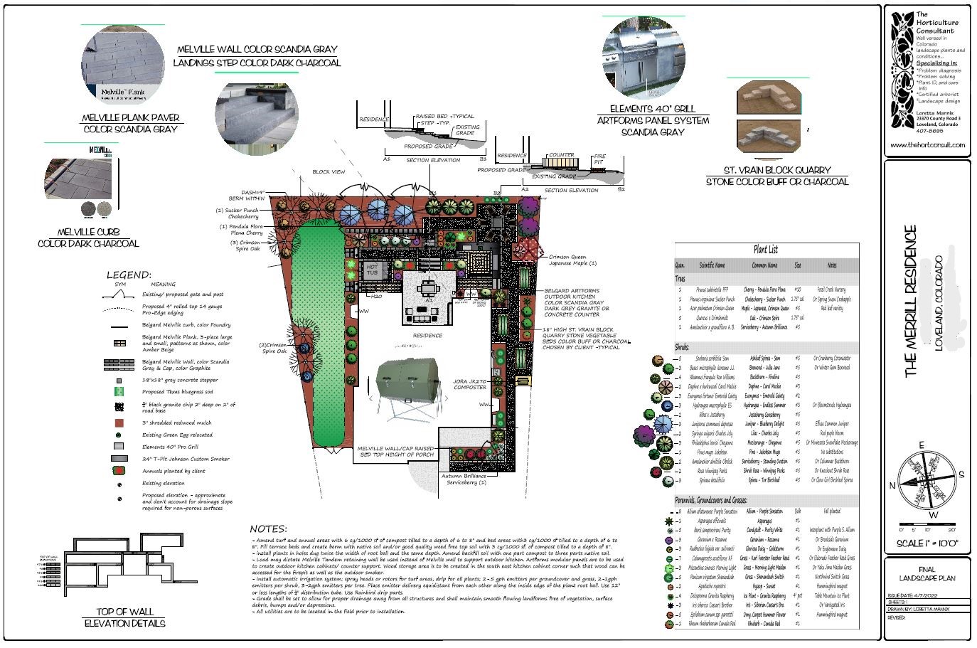 Loveland, Colorado was designed to fit the client's contemporary aesthetic. Belgard materials such as Melville Wall,Curb and Plank Paver were employed as well as St. Vrain Block non-tumbled Quarry Stone block wall material to create a contemporary and monochromatic hardscape. Front landscape included a raised planter bed that obscured the side view of an elevated concrete front porch. Backyard path passed contemporary block raised vegatable beds and lead to a future outdoor kitchen area, patio and a fire pit patio. Continuing around the back landscape leads to a long turf area for play. Please visit the Portfolio pdf and this video and Entertainment Portfolio to see more after images of this amazing landscape.